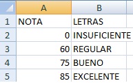 4. Teniendo encuenta la tabla anterior, como realizaria la formula buscarv para que no de el valor de la nota en letras desde la celda F6 en la columna valoración.